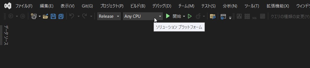 ③ソリューション構成を【Release】に、ソリューションプラットフォームを【Any CPU】に設定します。